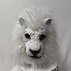 White Lion Beast Head Cover Halloween White Lion Mask Makeup Ball Animal COS Party Performance Room Props