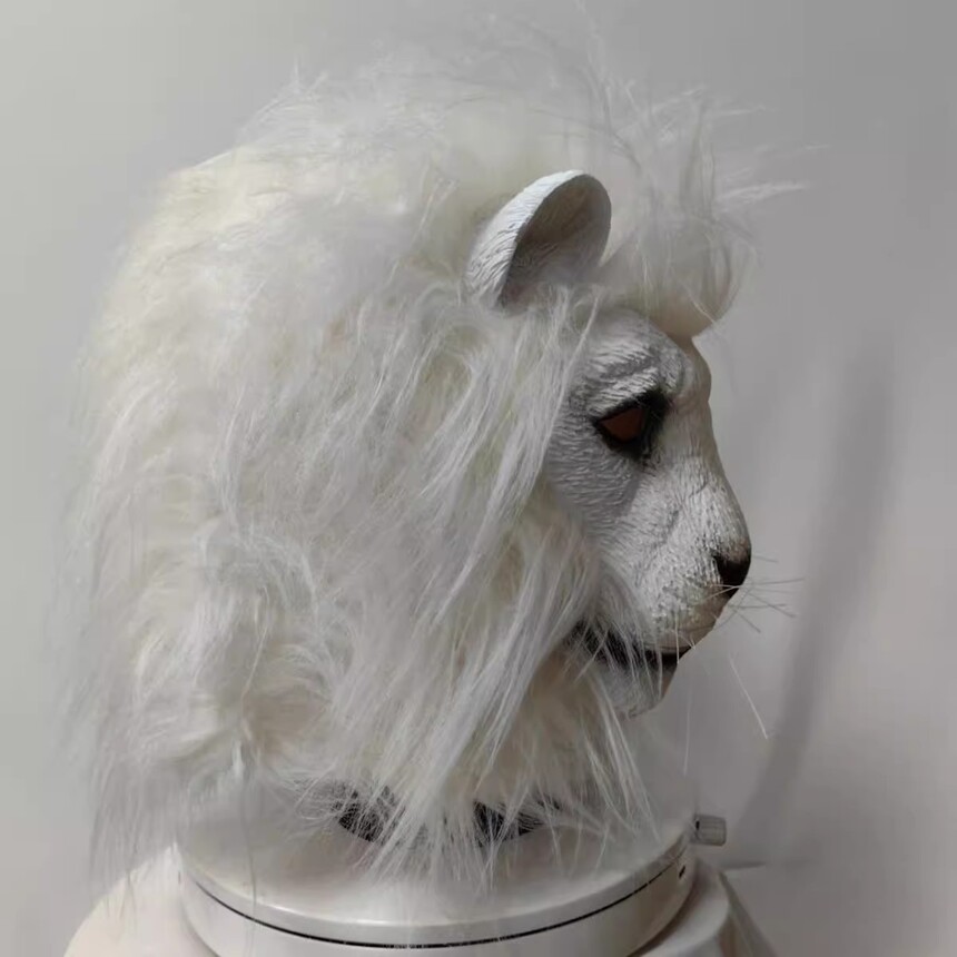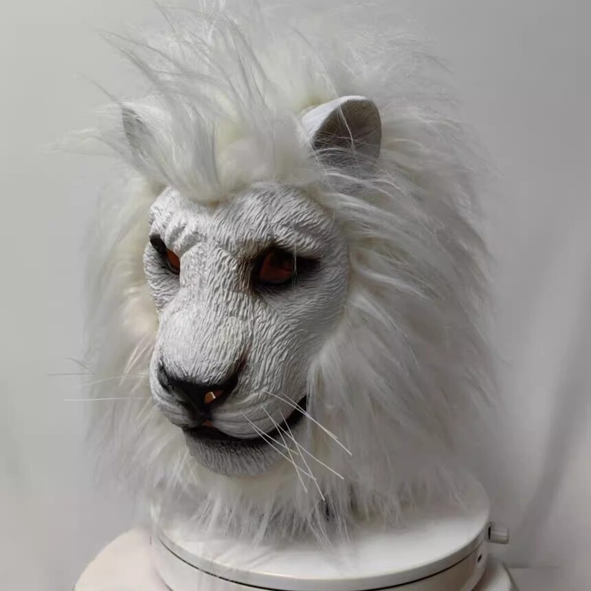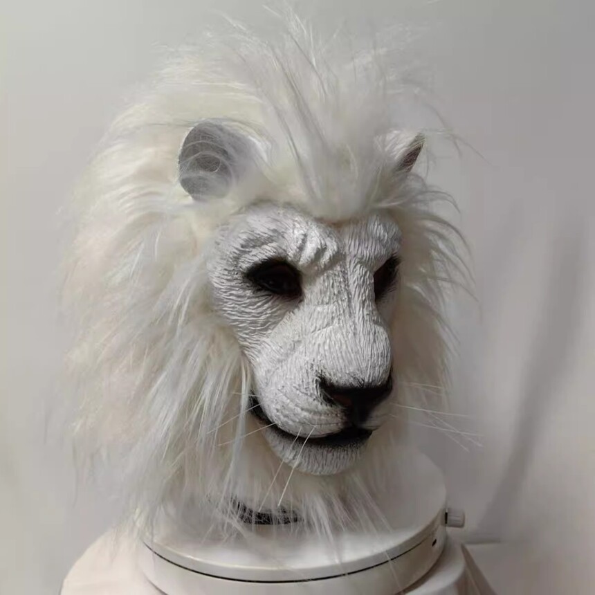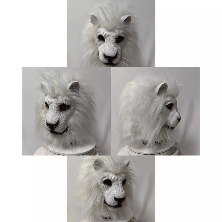 White Lion Beast Head Cover Halloween White Lion Mask Makeup Ball Animal COS Party Performance Room Props