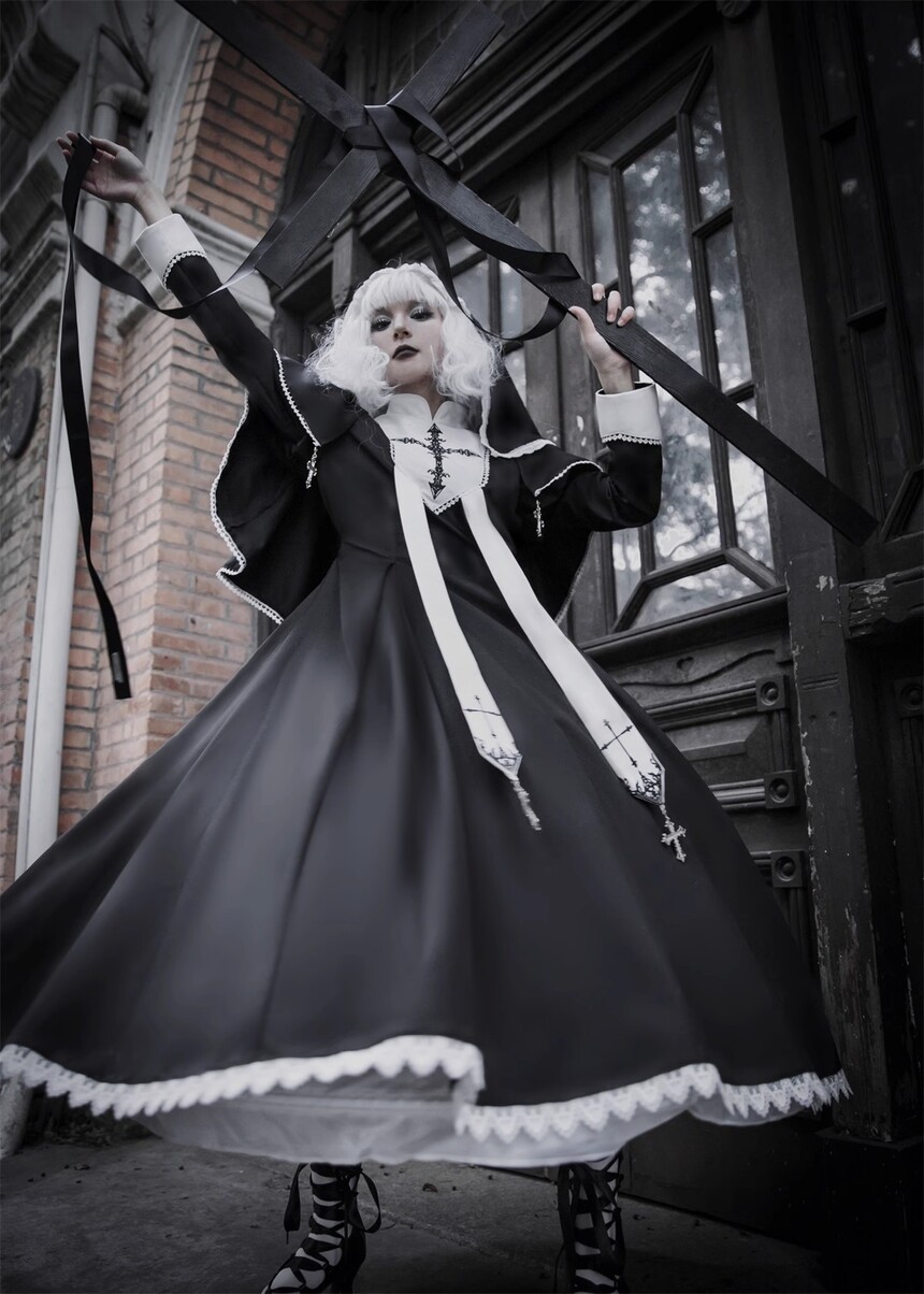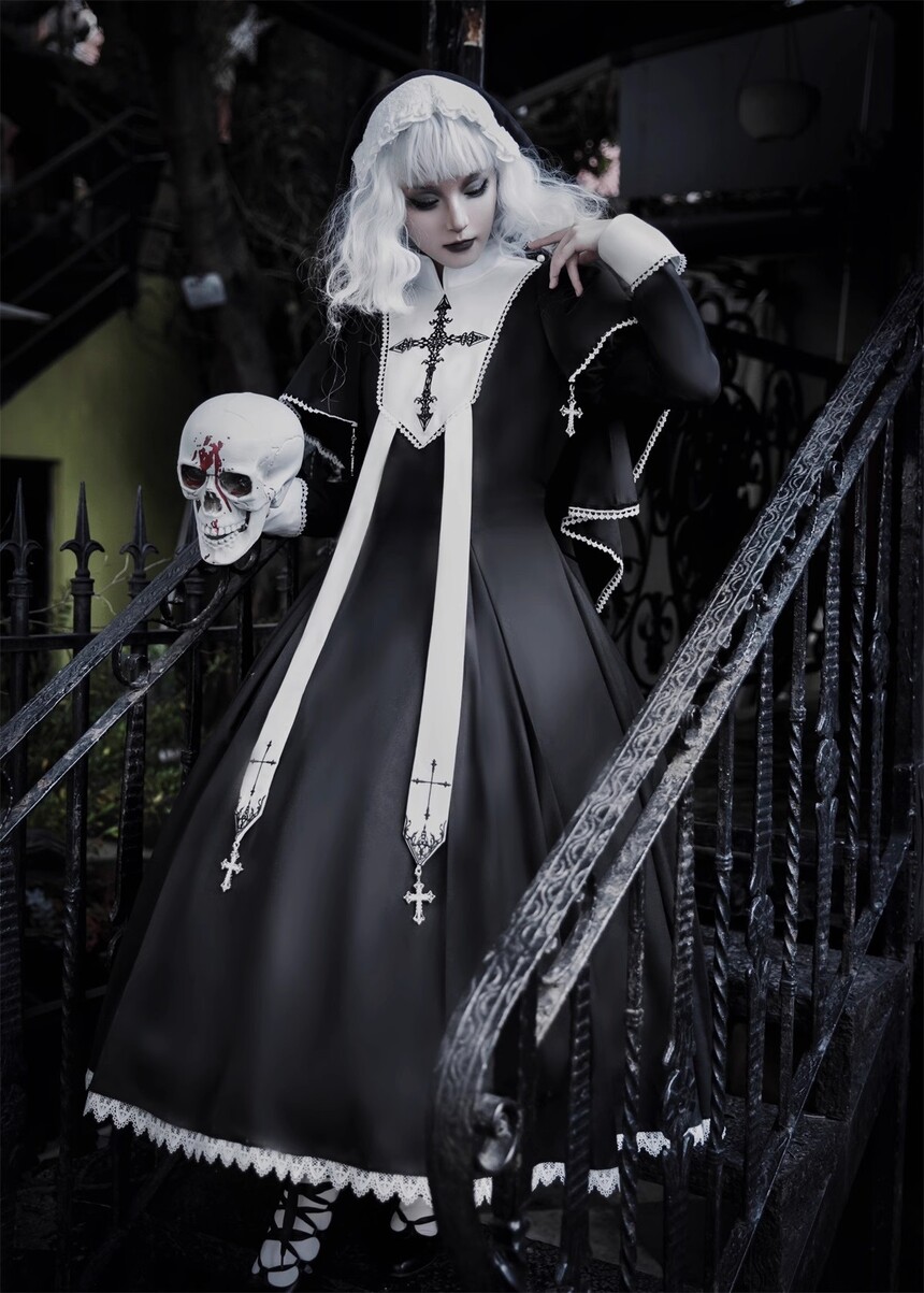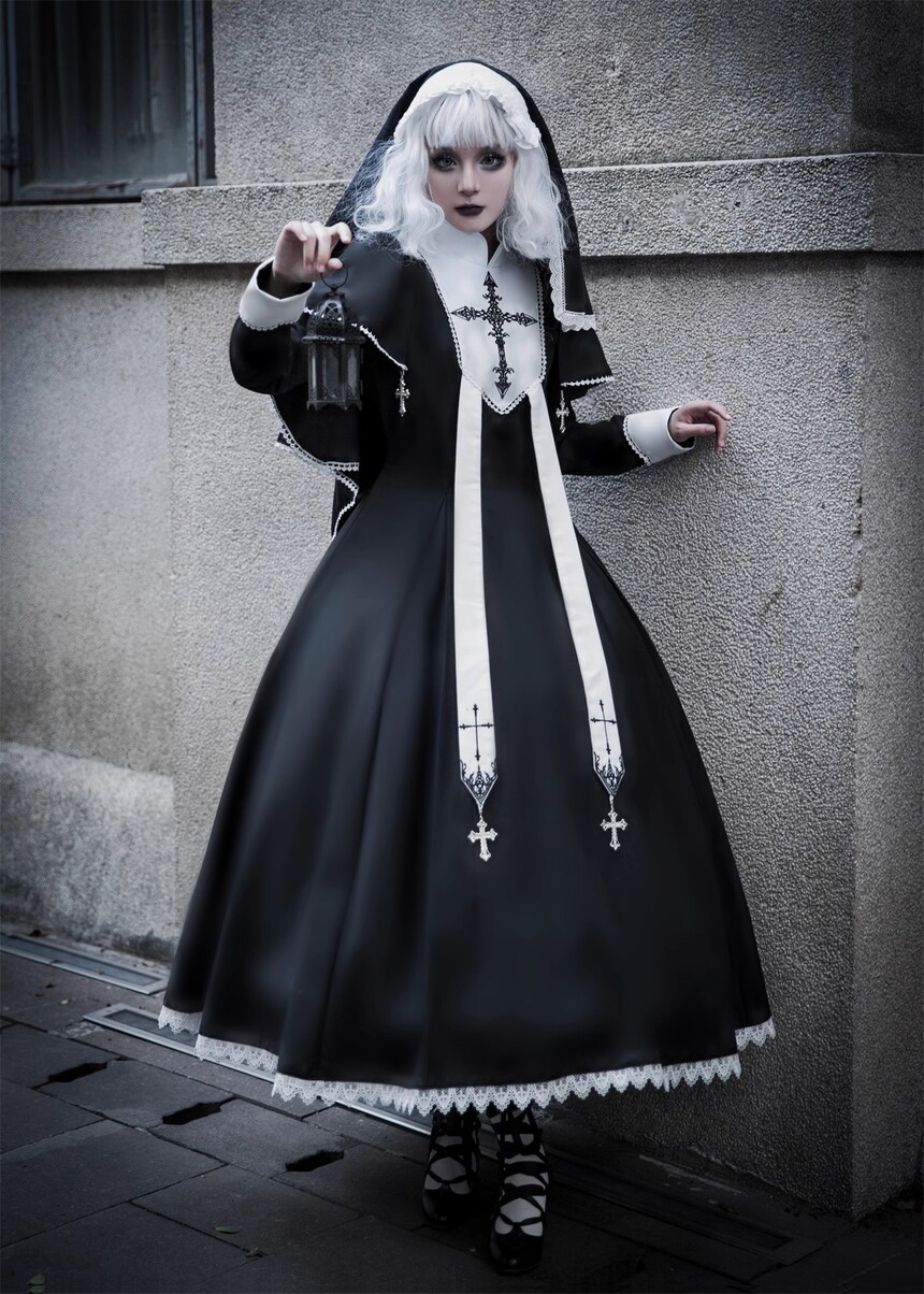 Lolita Halloween costume, nun's daily Gothic dark dress, Lolita dress